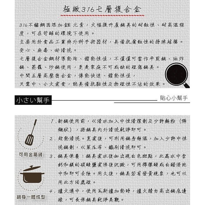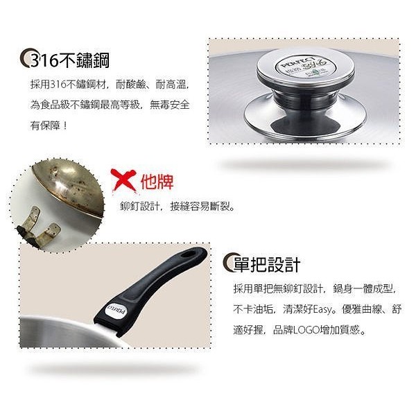《好媳婦》PERFECT【理想牌極緻316不鏽鋼七層複合金平底小炒鍋33cm附蓋】一體成型無鉚釘/不沾鍋/油炸鍋台灣製