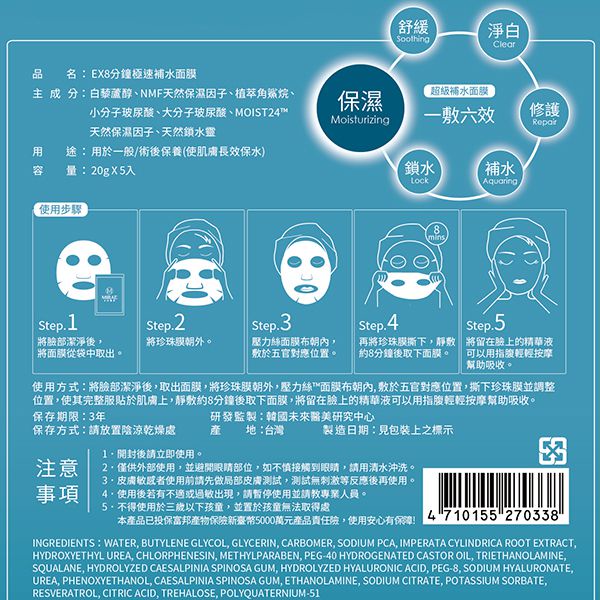 未來美 EX8分鐘極速面膜 5入【佳瑪】【買一送一】下單1出貨2