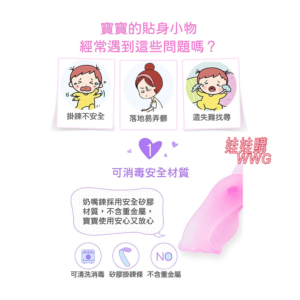 Pigeon 貝親多功能矽膠奶嘴鍊,一體式掛鍊,透過調整卡扣位置調整長度