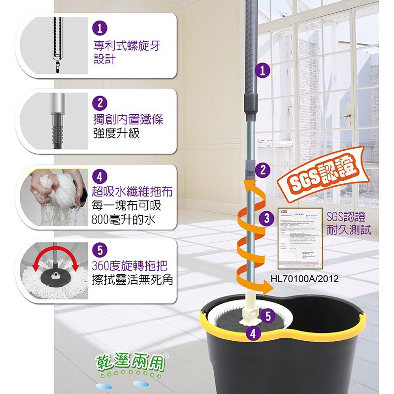 舞水痕 黑金剛旋轉拖把組(手壓式) 360度拖把 滾筒式拖把 旋轉拖把 拖把組 RT-C9242