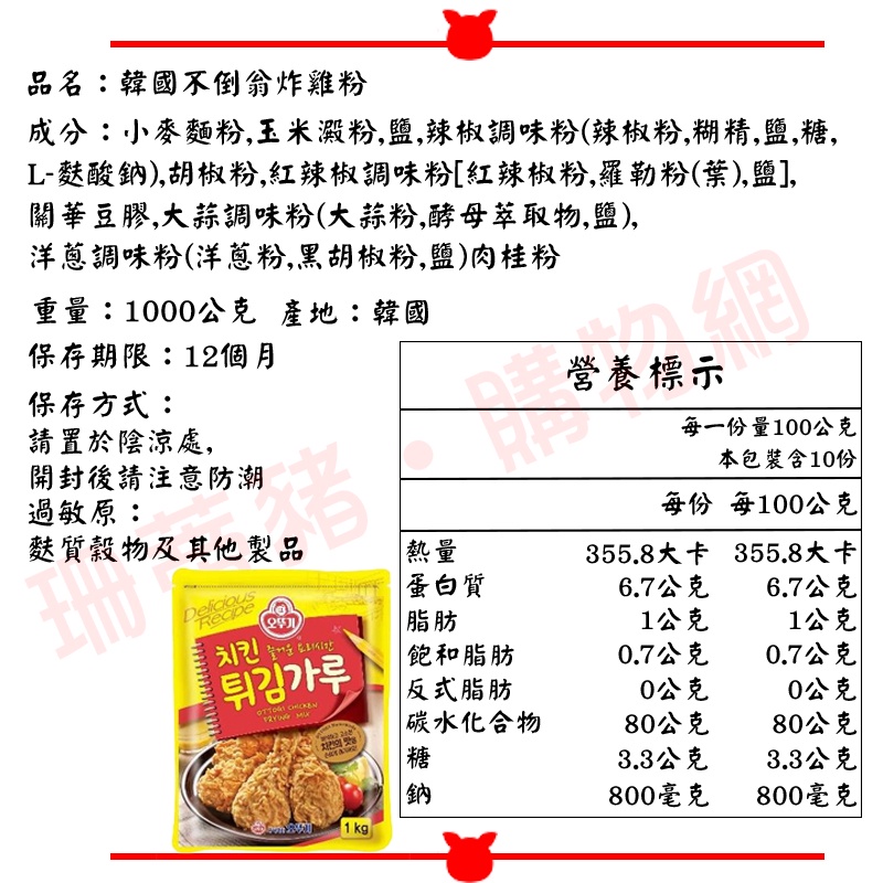 韓國 不倒翁炸雞粉 1kg 韓式炸雞 炸雞粉 不倒翁 煎餅粉 炸雞 韓國不倒翁 酥炸 炸粉 酥炸粉【珊蒂豬•購物網】