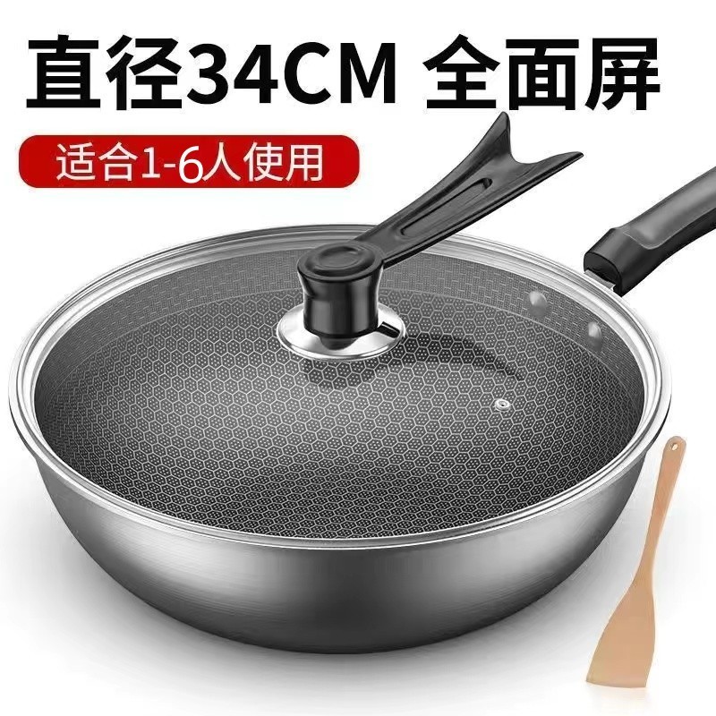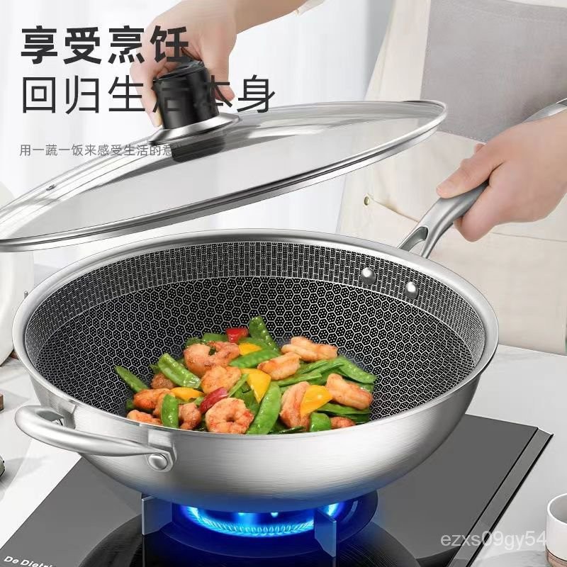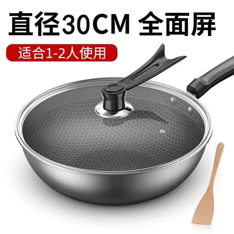 🔥臺灣出🔥德國不銹鋼炒鍋家用不粘鍋無塗層無油煙炒菜鍋電磁爐燃氣通用鍋具 KXCW