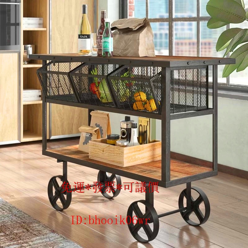 低價 新品 免運 發票 實木餐車 美式工業風 時尚手推車 鐵藝創意可移動廚房架 餐邊櫃 鐵藝