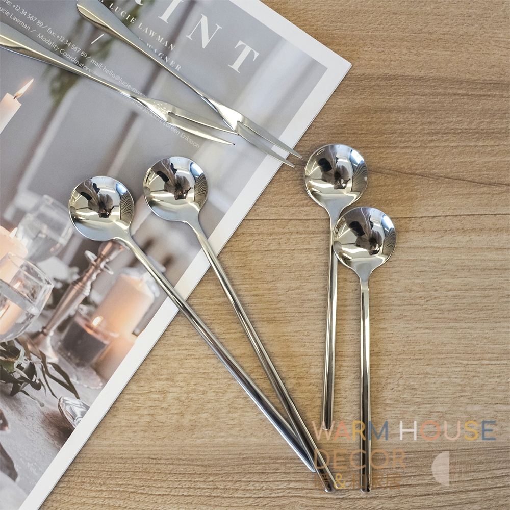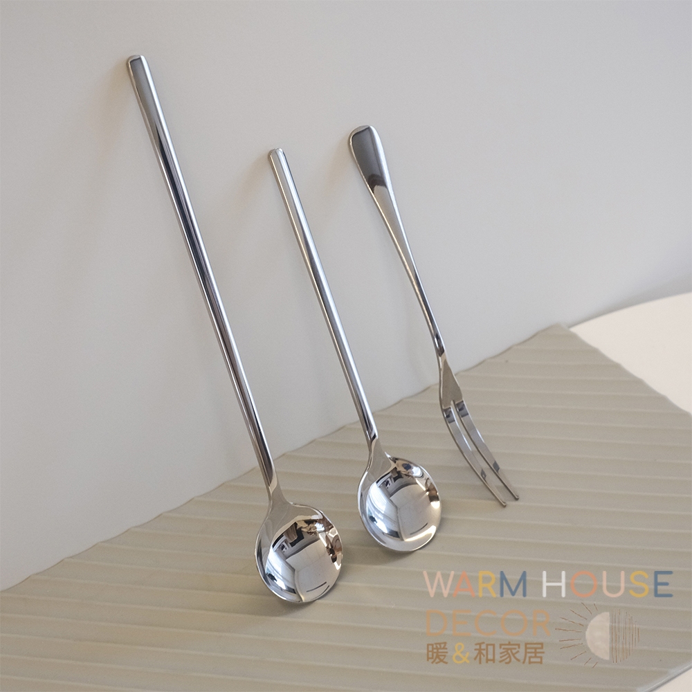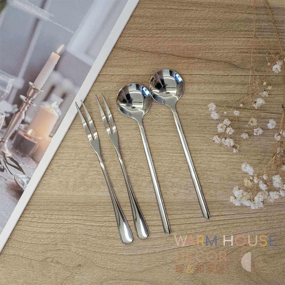 【暖&和家居】台灣現貨 304不銹鋼咖啡勺 餐具組 甜點湯杓 咖啡攪拌勺 小湯匙 甜點勺 餐具 水果叉 湯匙 不銹鋼湯杓