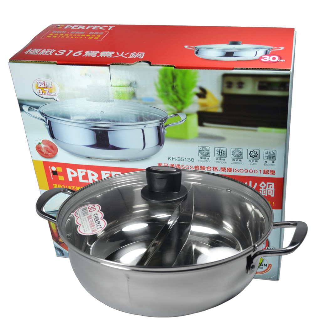 PERFECT 極緻316鴛鴦火鍋 30cm 附玻璃蓋 火鍋 湯鍋 不鏽鋼火鍋 鴛鴦鍋