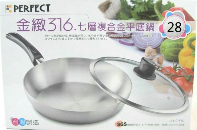 PERFECT 金緻316七層複合金平底鍋28cm (台灣製~玻璃蓋
