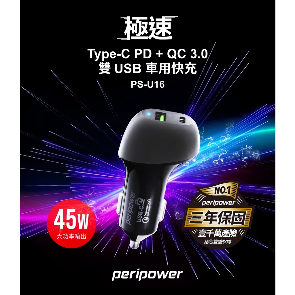 PERIPOWER PS-U16 極速TYPE-C PD+QC3.0雙USB車充頭【真便宜】