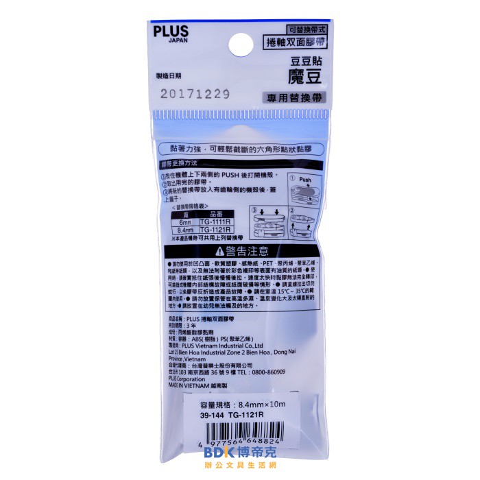 PLUS 台灣普樂士 卷軸雙面膠帶 豆豆貼 魔豆 專用替換帶 39-144 TG-1121R 8.4mm