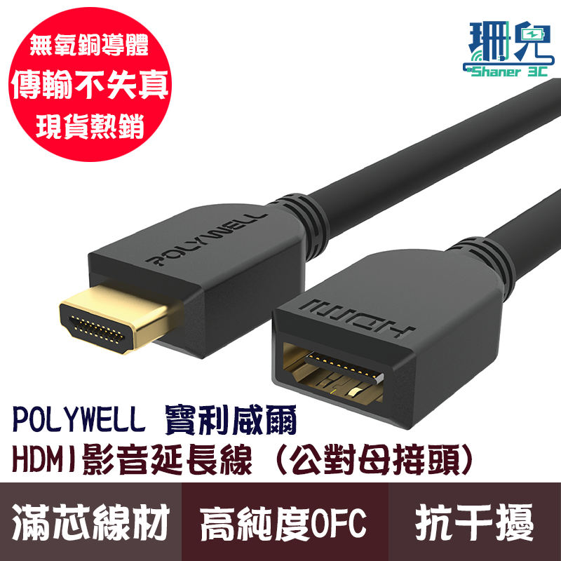POLYWELL 寶利威爾 HDMI延長線 2.0版 公對母 15公分~3米 4K 60Hz HDMI 工程線 延長線