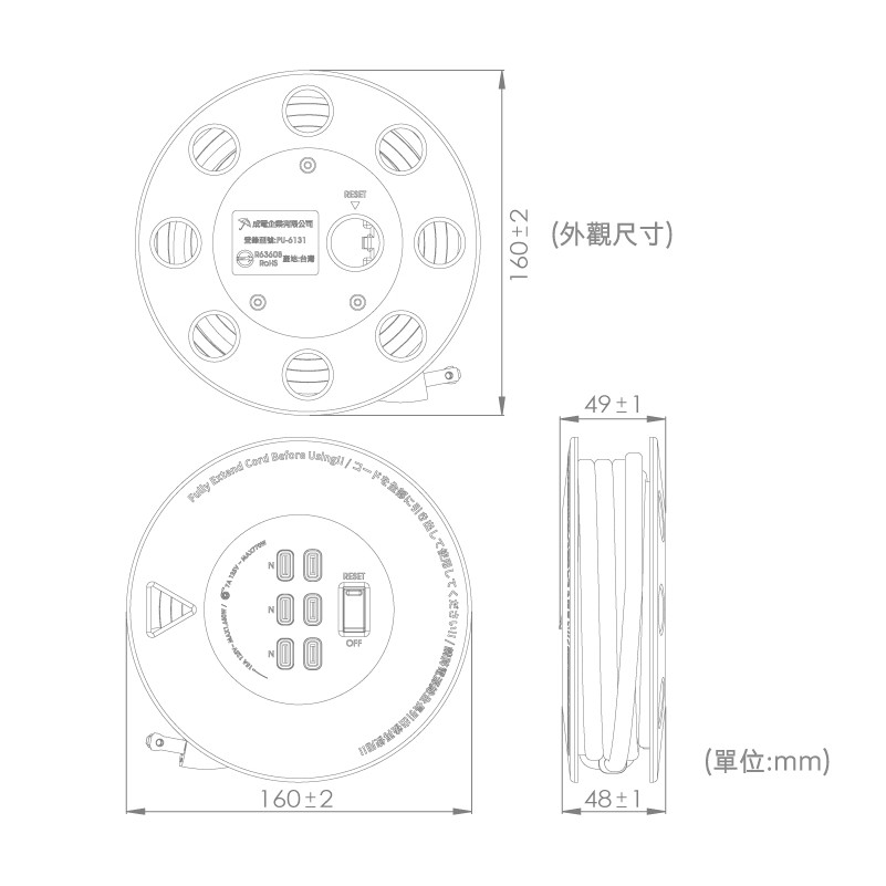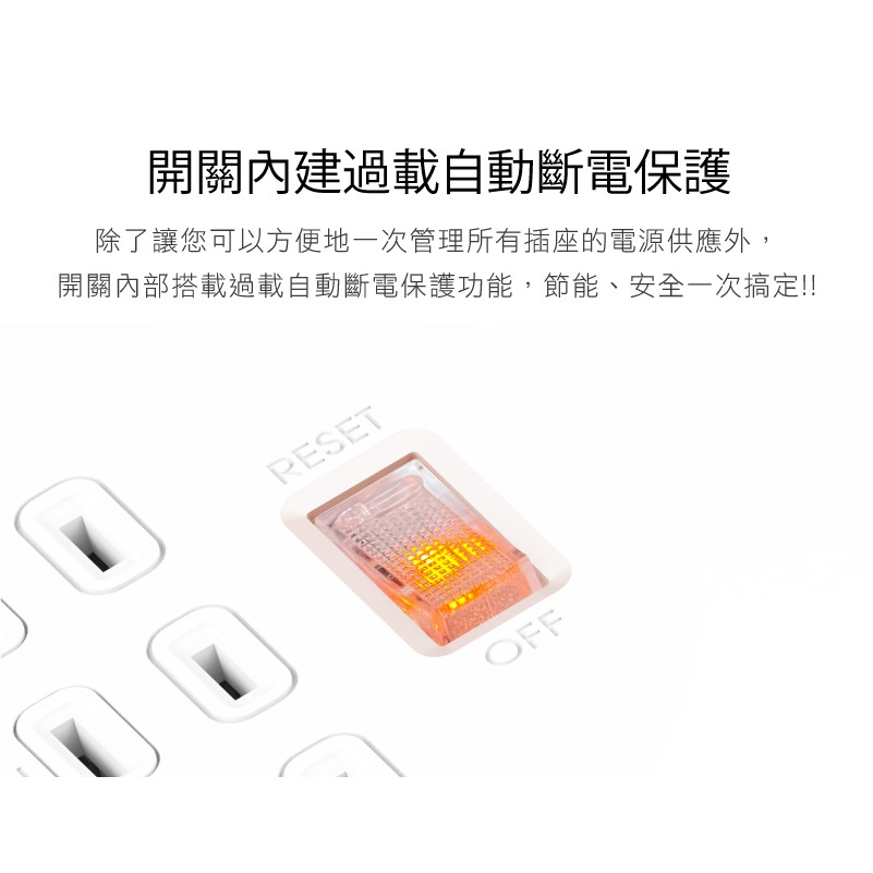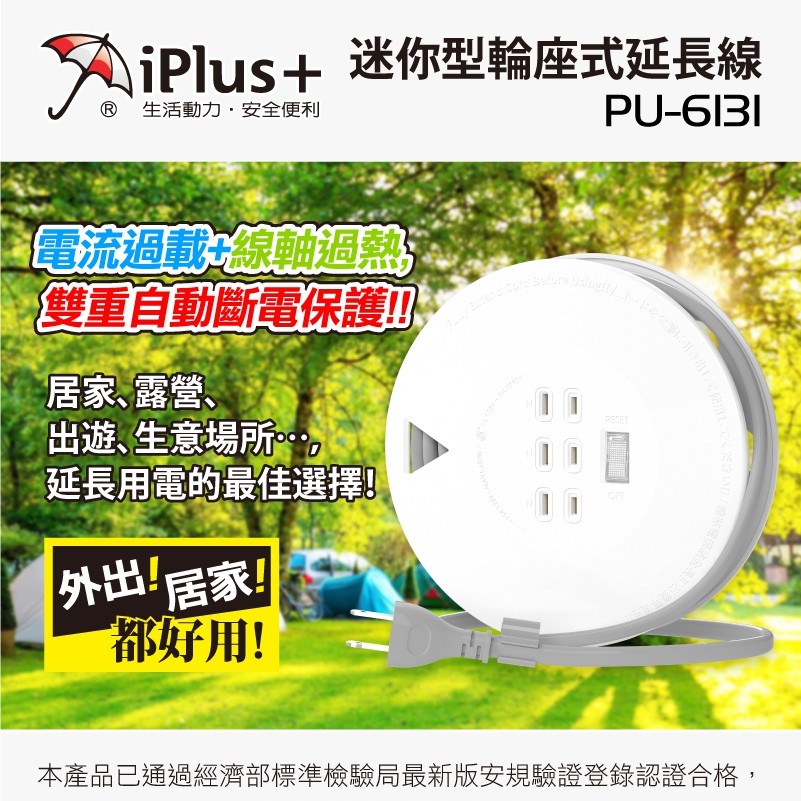 PU-6131 保護傘 iPlus+ 迷你型 輪座式 1開3插 2P 電源延長線 21尺 線軸過熱 超過負載 自動斷電