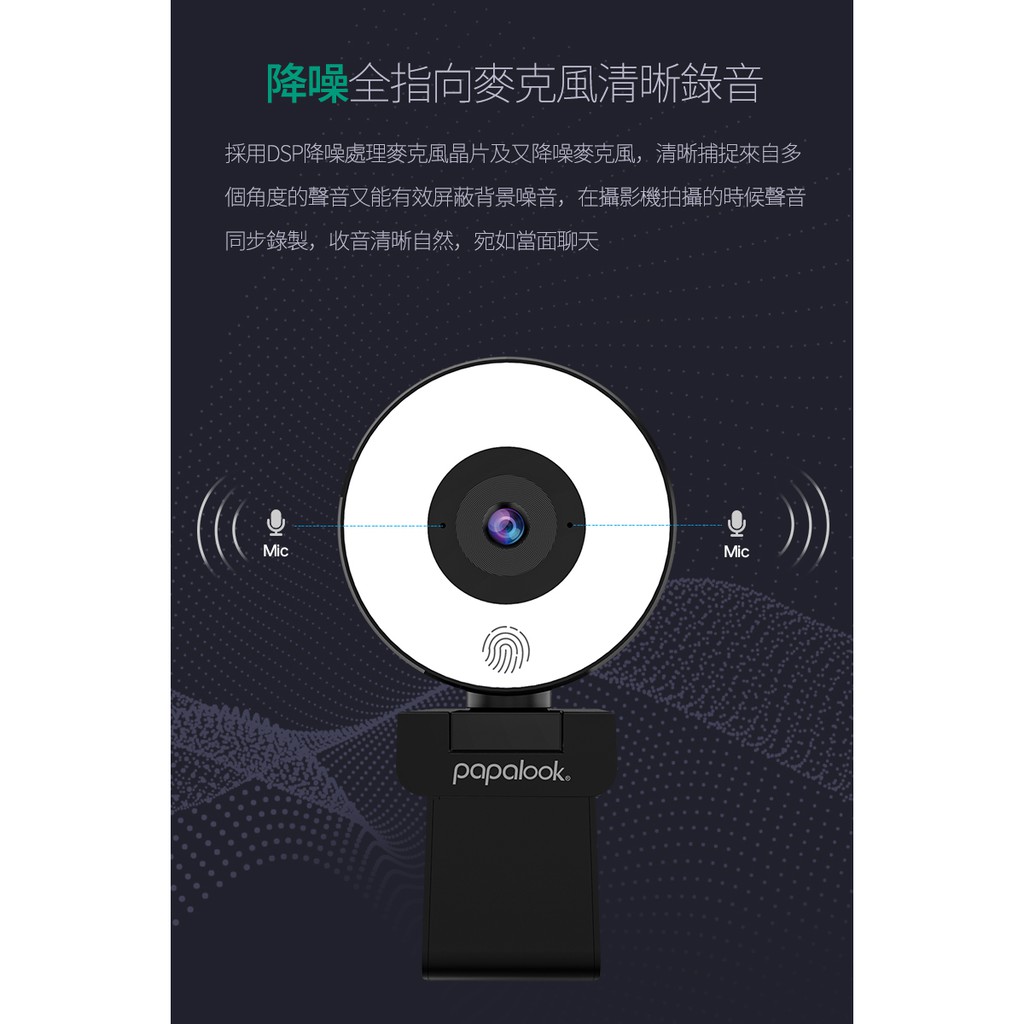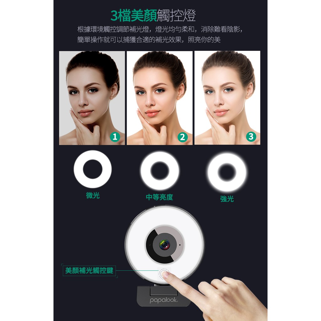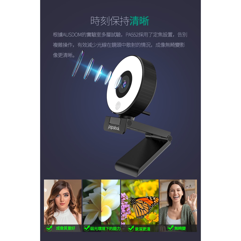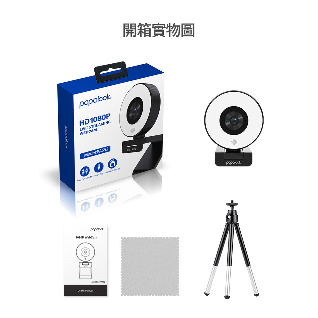 PAPALOOK 高清 電腦視訊 攝影機 三段美顏補光燈 內建降噪麥克風PA552 視訊鏡頭 遠距上課 視訊會議