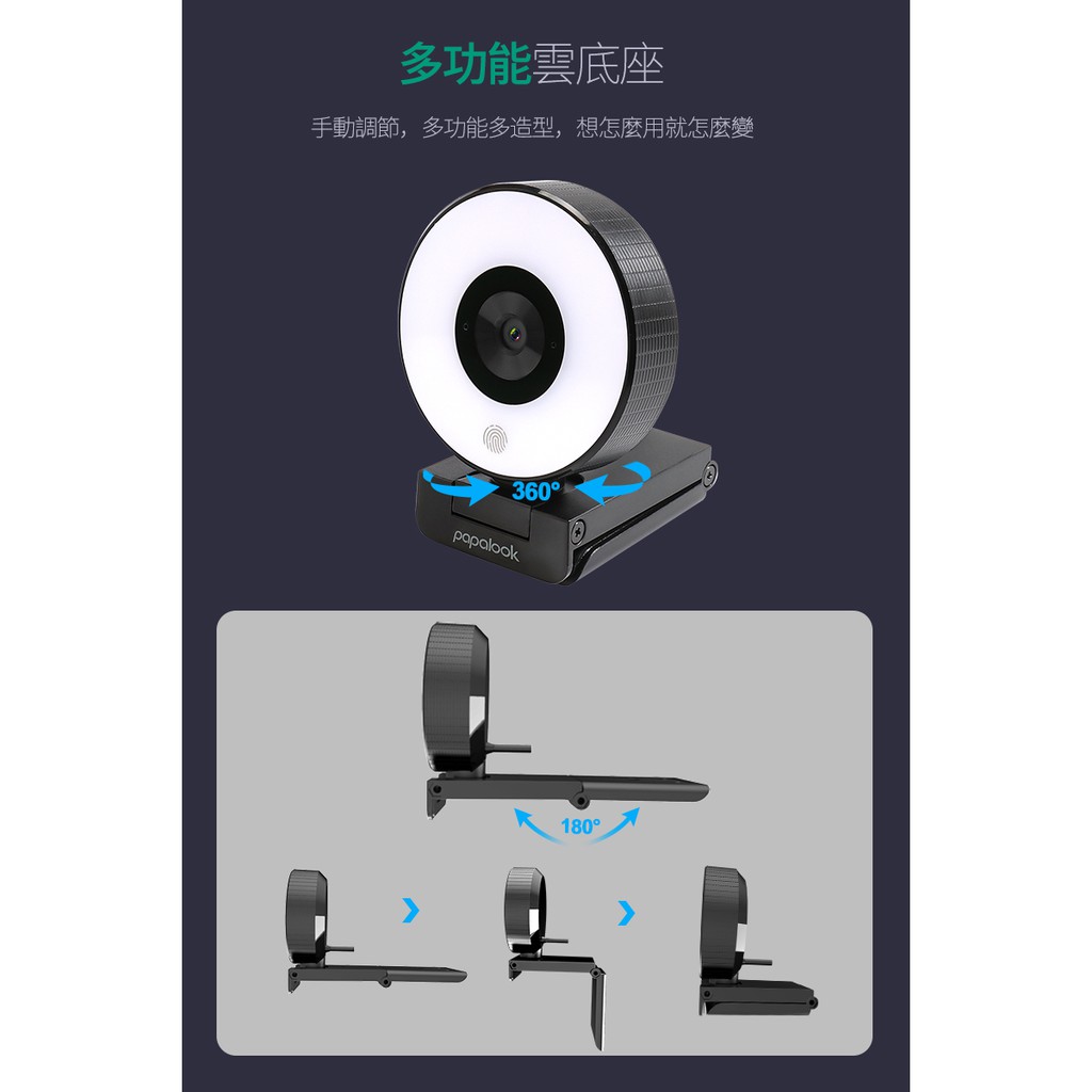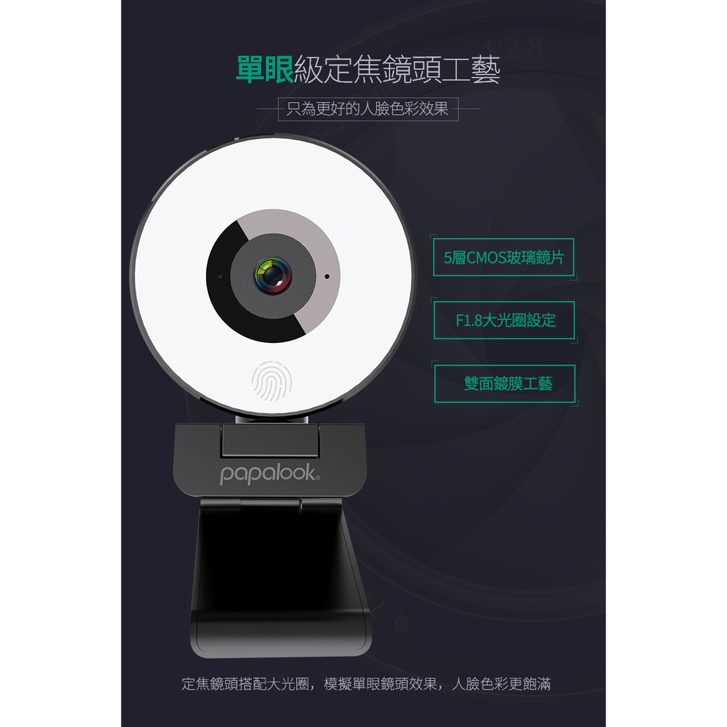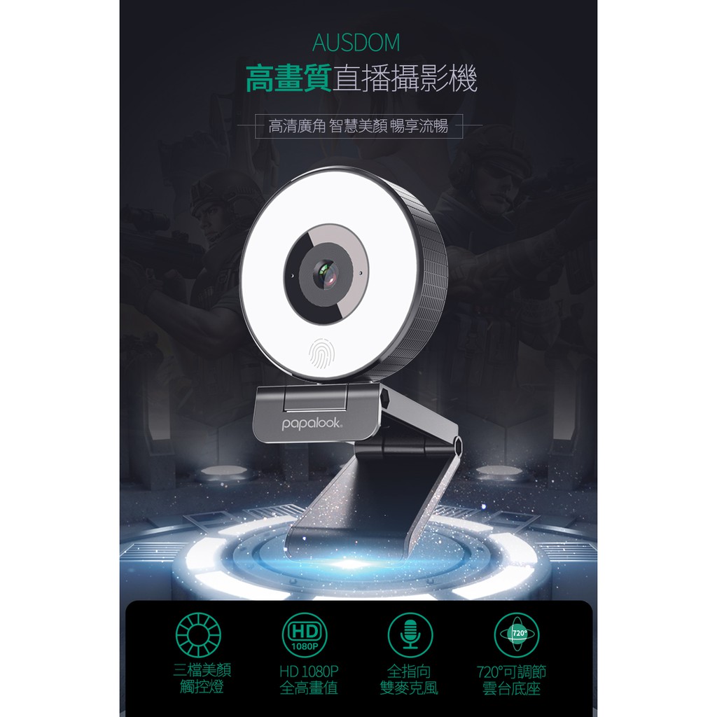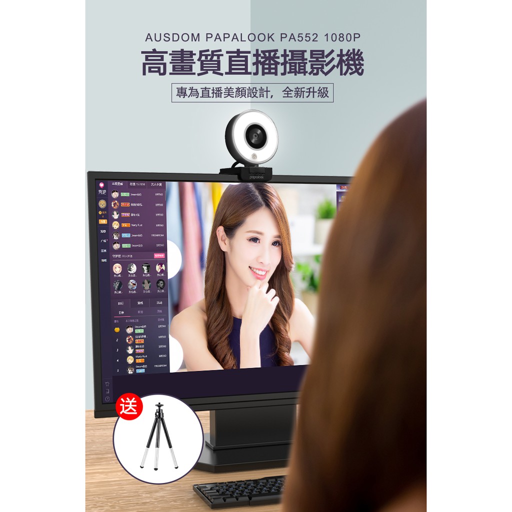 PAPALOOK 高清 電腦視訊 攝影機 三段美顏補光燈 內建降噪麥克風PA552 視訊鏡頭 遠距上課 視訊會議