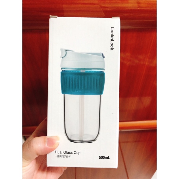 【LocknLock樂扣樂扣】耐熱玻璃北歐風兩用隨行杯500ML(附吸管/大口徑/綠色/奶茶色)