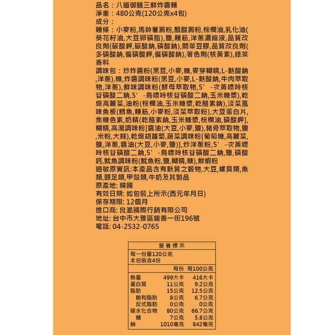 Paldo御膳三鮮炸醬麵120g克 x 4【家樂福】