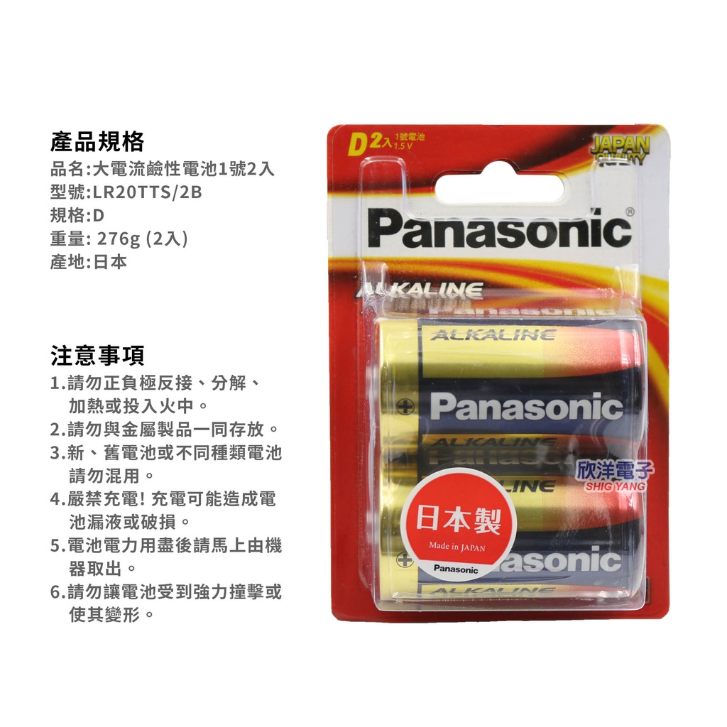 Panasonic 國際牌 電池 日本製 鹼性電池 1號電池 D電池(2入) / 2號電池 C電池(2入) 適用手電筒