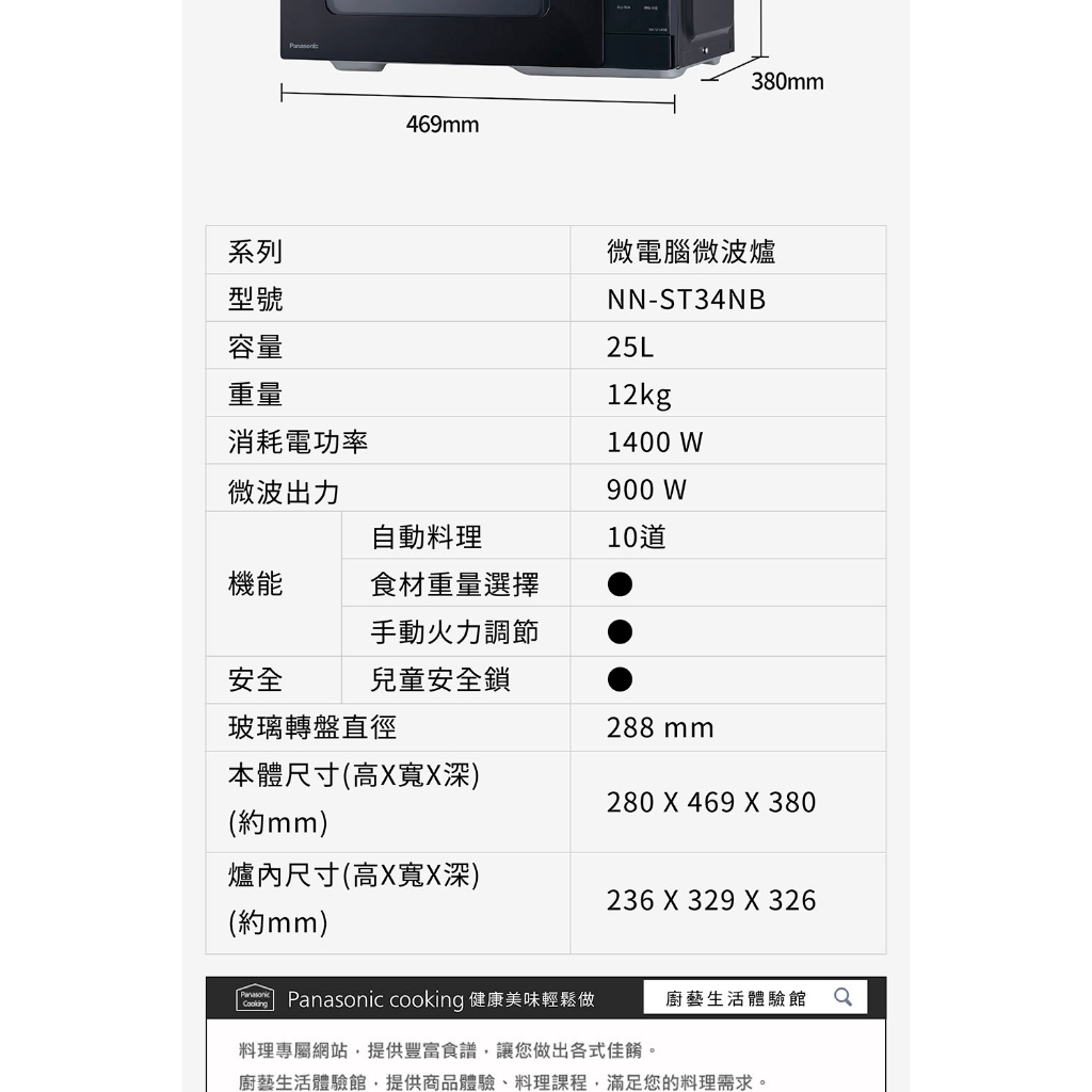 Panasonic 國際牌 25L微電腦微波爐 NN-ST34NB