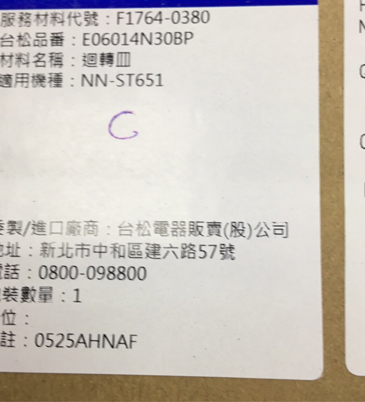Panasonic 國際牌NN-ST651微波爐廻轉皿
