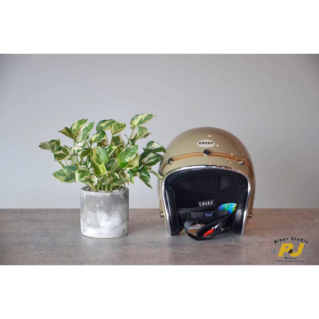 (現貨)快速出貨 P&J捷寶騎士部品 Chief Ticuna 金線條 二代 復古 小帽體 安全帽 荒野綠