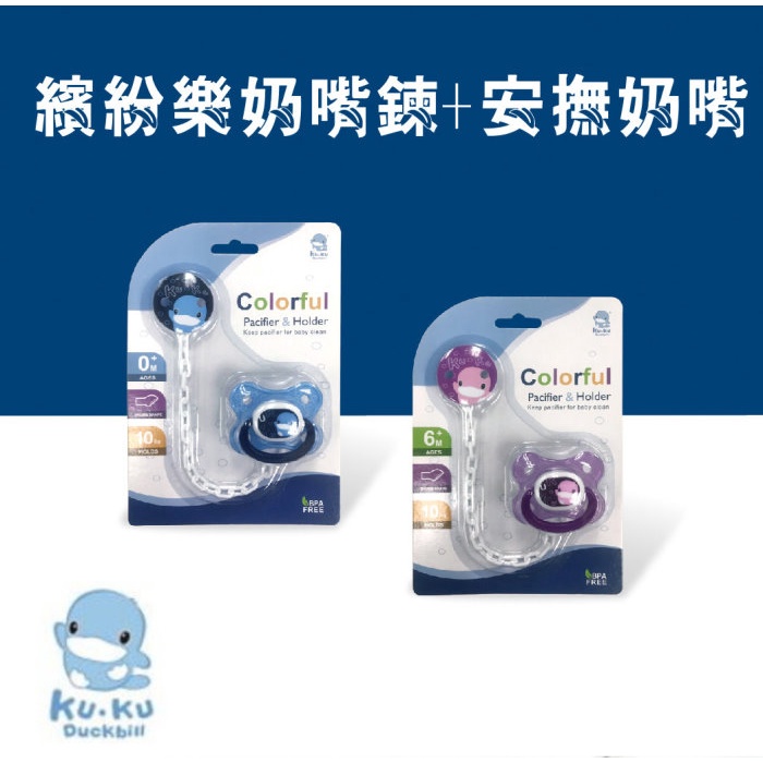 KUKU 酷咕鴨 繽紛樂奶嘴鍊+初生/較大安撫奶嘴