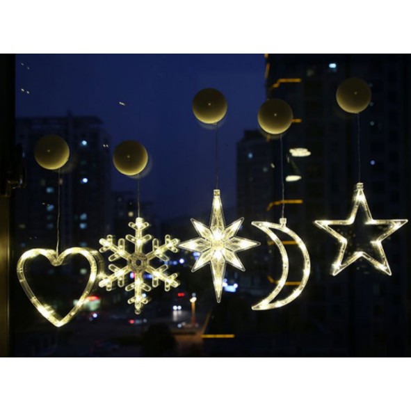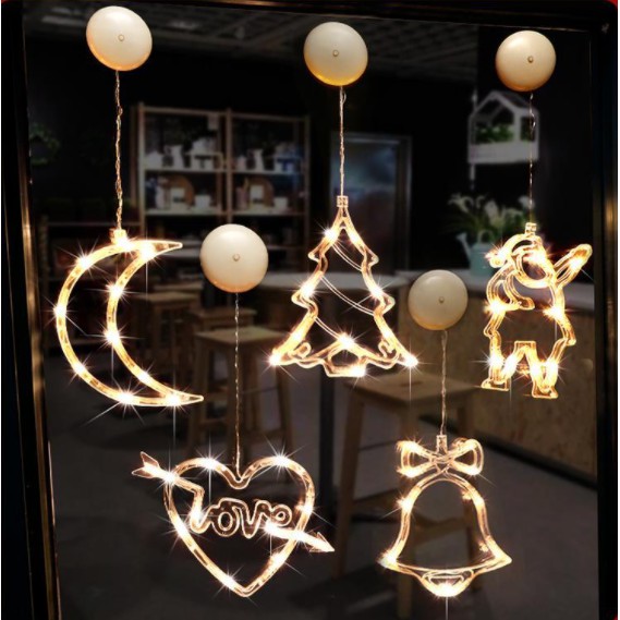 🐱妍希小舖🐱 櫥窗吊燈 吸盤燈 聖誕吸盤燈 造型燈串 星星燈 北極星燈 月亮燈 裝飾燈 聖誕燈 鈴鐺燈 聖誕節 雪花燈