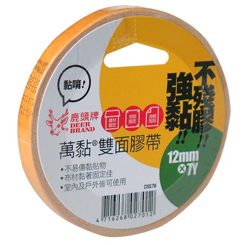 鹿頭 DSS7B萬黏12mm×7y雙面膠帶6.4M
