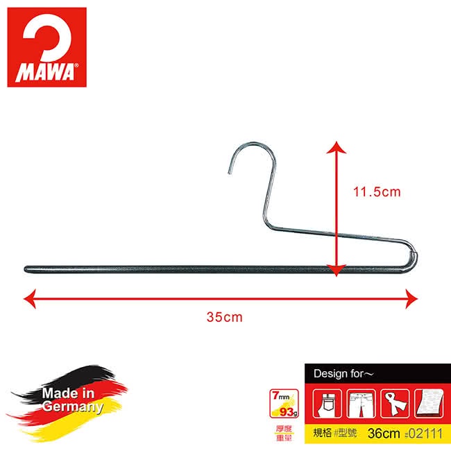 【德國MAWA】德國原裝進口無痕止滑單排褲架33cm(5入/黑色) 無痕褲架 止滑褲夾 褲架 裙褲 架 褲子收納