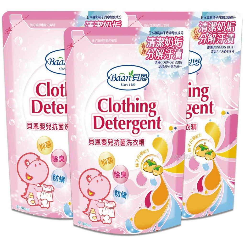 Baan貝恩 除臭 防瞞 抗菌三合一嬰兒洗衣精三入補充包(800ml X 3包)