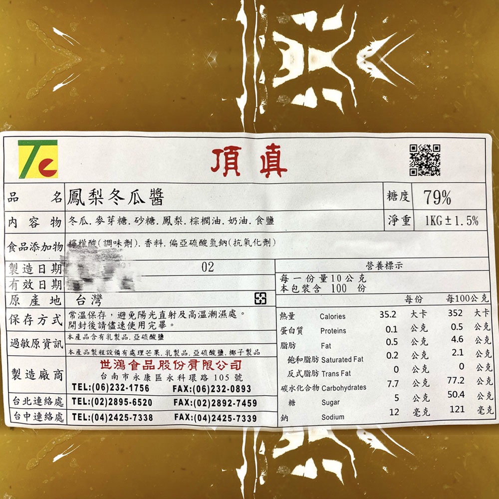 【柚子烘焙材料】台灣頂真 鳳梨冬瓜醬 1kg 千穗蔬果醬 鳳梨冬瓜 烘焙 鳳梨酥 月餅 麵包 糕餅 內餡 鳳梨酥原料