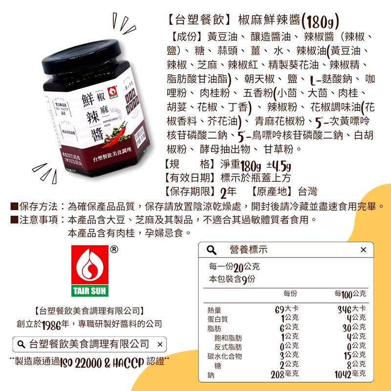 【暐暐商店】台塑鑽 台塑餐飲 椒麻鮮辣醬180g/罐