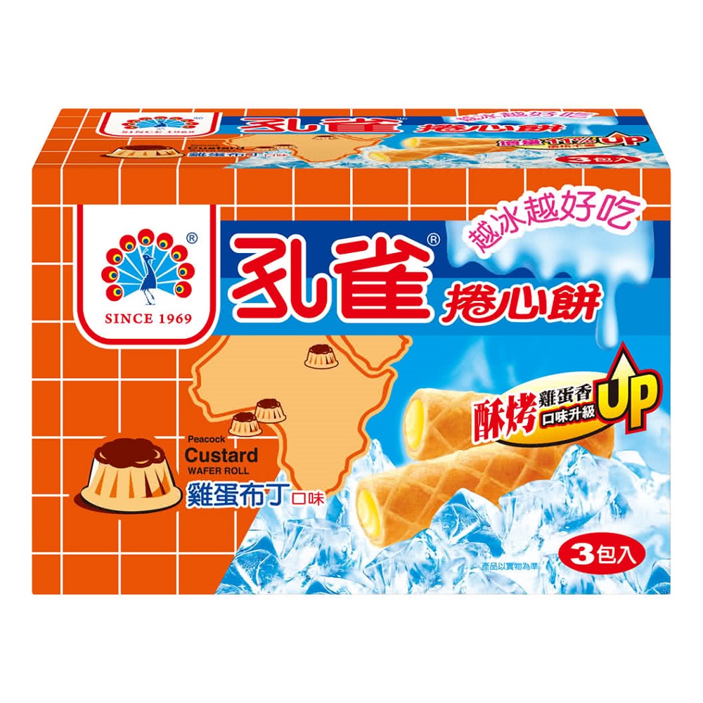 孔雀捲心餅量販包 雞蛋布丁口味(63gx3)-189g克【家樂福】