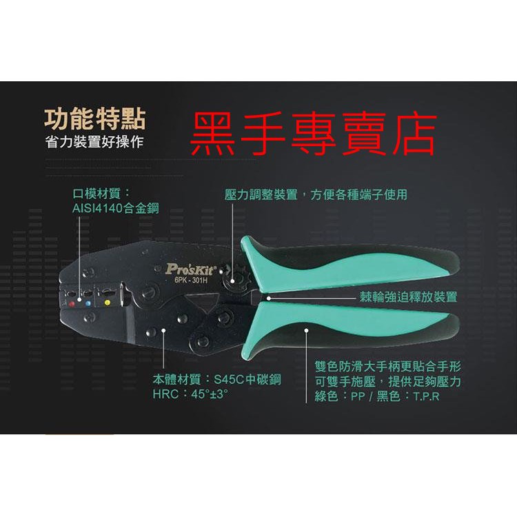 黑手專賣店 附發票 寶工Pro'sKit 6PK-301H Y.O絕緣端子棘輪壓鉗1.25~5.5mm2 棘輪壓著鉗