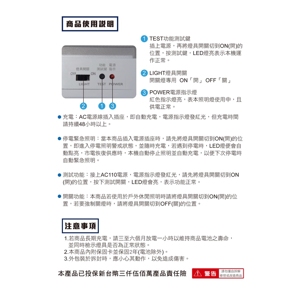 【太星電工】夜神LED緊急停電照明燈 24LED 白光 /EM-168-24個檢 IGA9001