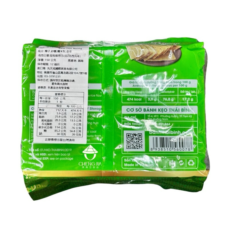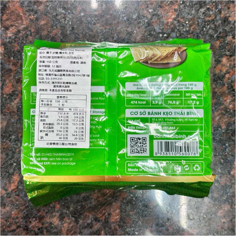 越南烤椰子餅 BANH DUA NUONG THAI BINH 越南零食人氣脆酥椰子餅 越南餅乾 越南零150G/10入