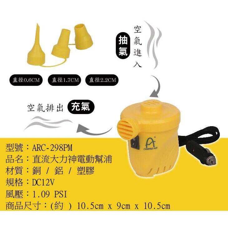 CAMPING ACE 野樂 直流大力神電動幫浦DC12V 大力神充氣幫浦 含3個氣嘴 ARC-298PM (車充版)