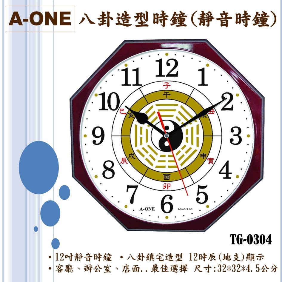經緯度鐘錶A-ONE八卦造型鐘 鎮宅保平安/12時辰(地支)對應時間表 靜音時鐘12吋 日本機芯台灣製造TG-0304