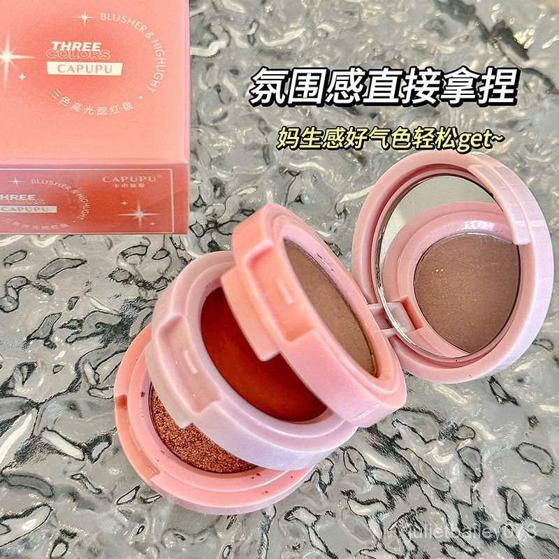 ♡ 𝑪𝒉𝒊𝒄 𝒖 ♡好僊【自帶鏡子】三色高光腮紅盤啞光大地色珠光修容收縮膨脹色女