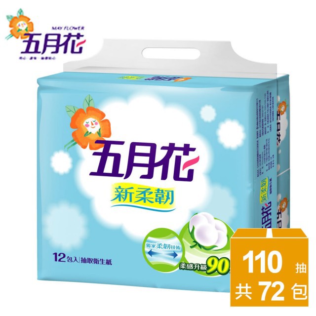 (宅免運) 五月花 新柔韌抽取式衛生紙110抽x72包 100抽x60包 蓬厚柔頂級抽取衛生紙100抽 五月花 厚
