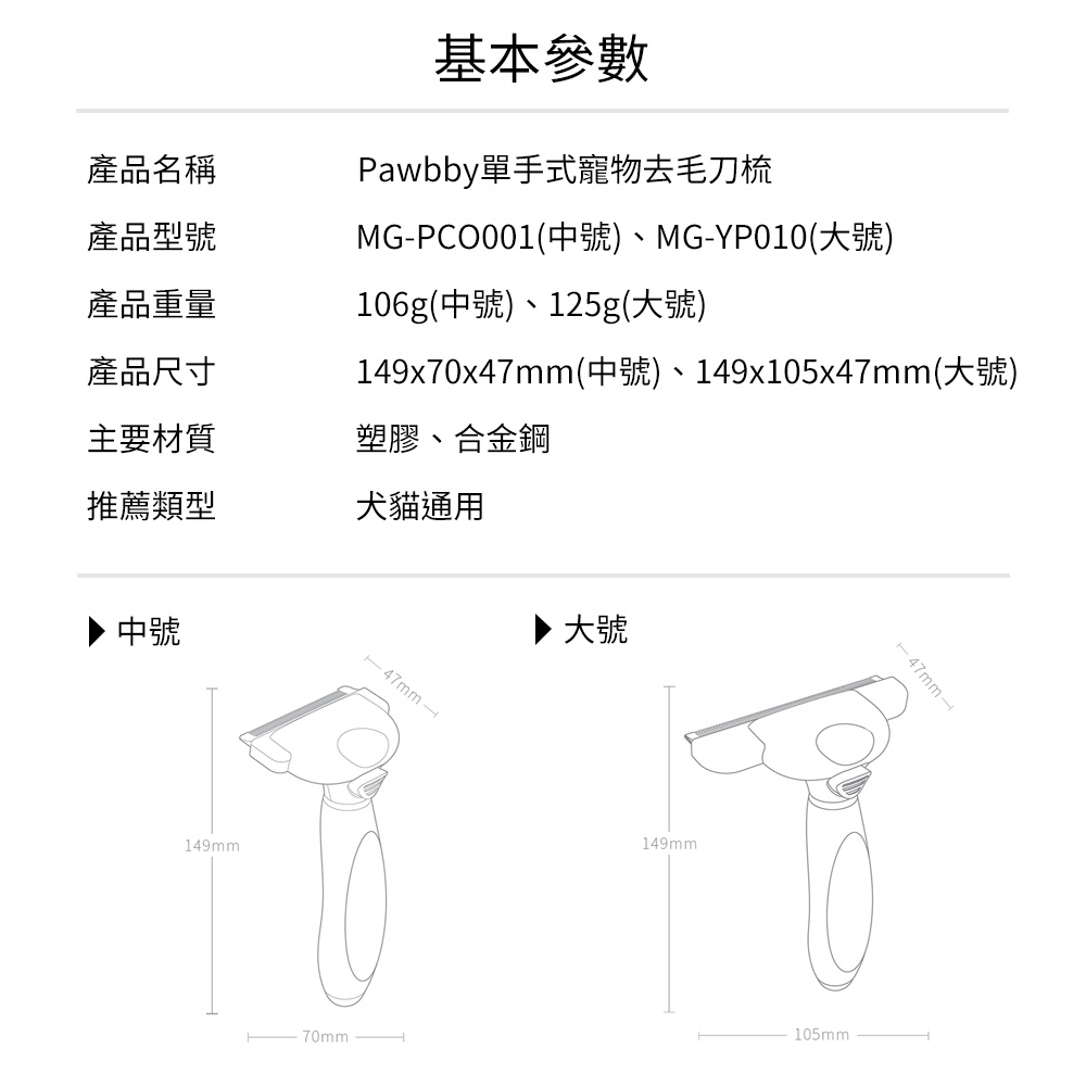 Pawbby 單手式寵物去毛刀梳【台灣現貨】中號 寵物美容梳 寵物理毛梳 長毛犬 長毛貓 季節換毛 梳毛刷 小米有品