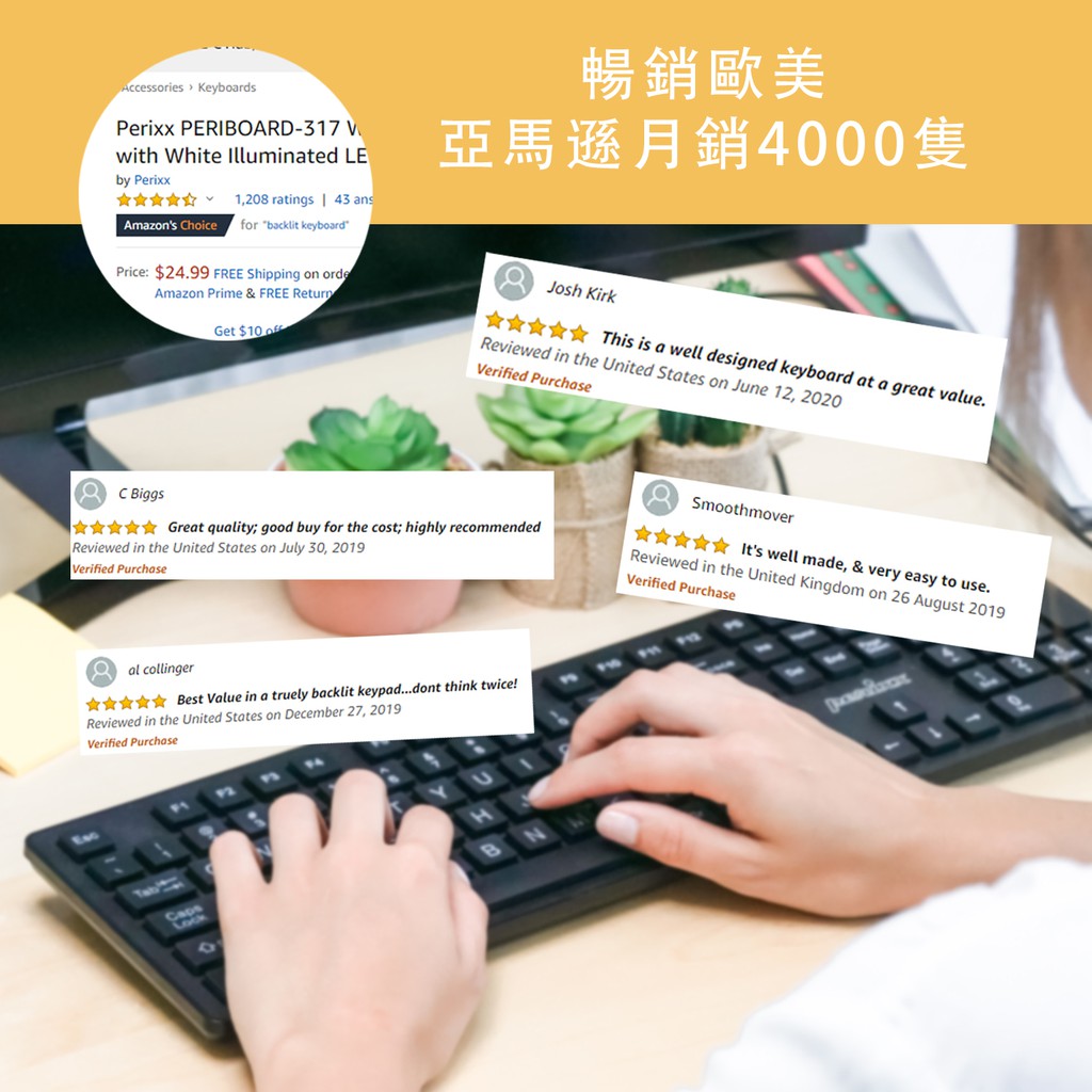 Perixx德國佩銳 銳鍵 PERIBOARD-317 大字印刷背光注音鍵盤 亞馬遜4.5星熱銷款