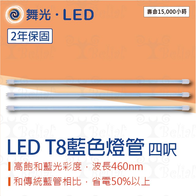【貝利亞絕色】舞光 LED T8 藍色燈管 藍光 四尺 20W 藍色玻璃色管 高飽和藍光彩度 適用娛樂場所 舞台