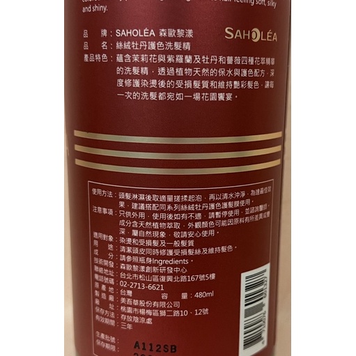 森歐黎漾牡丹洗髮精-絲絨牡丹. 護色洗髮(洗髮/護髮/沐浴) Saholea 森歐 星媽小舖