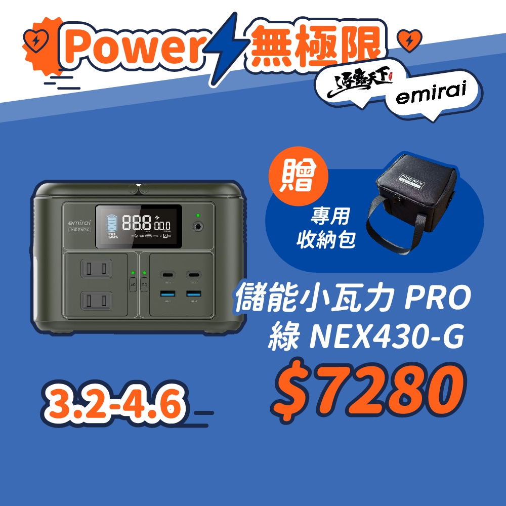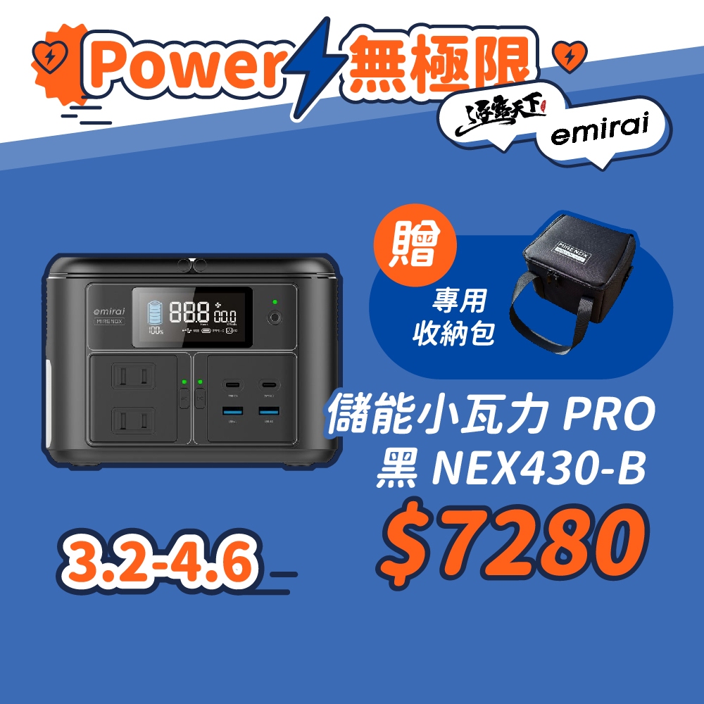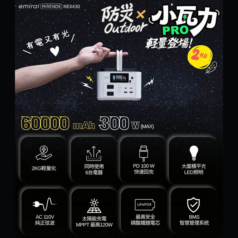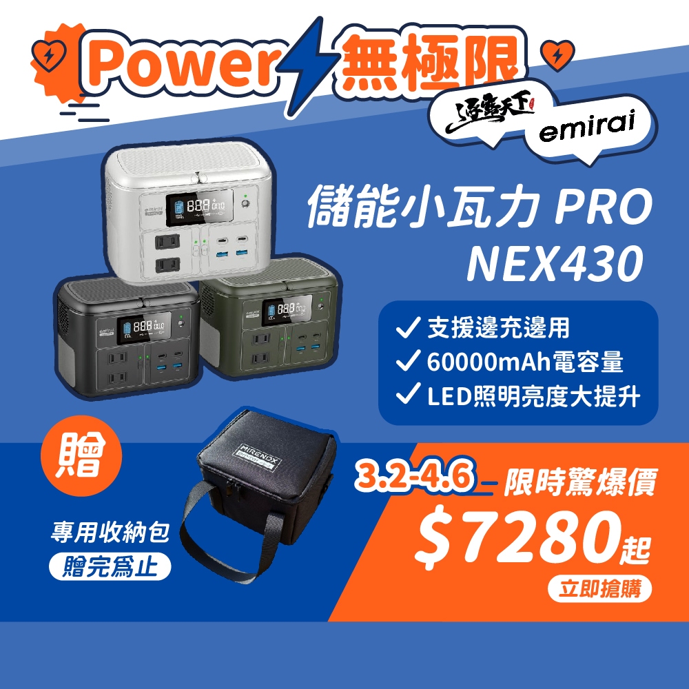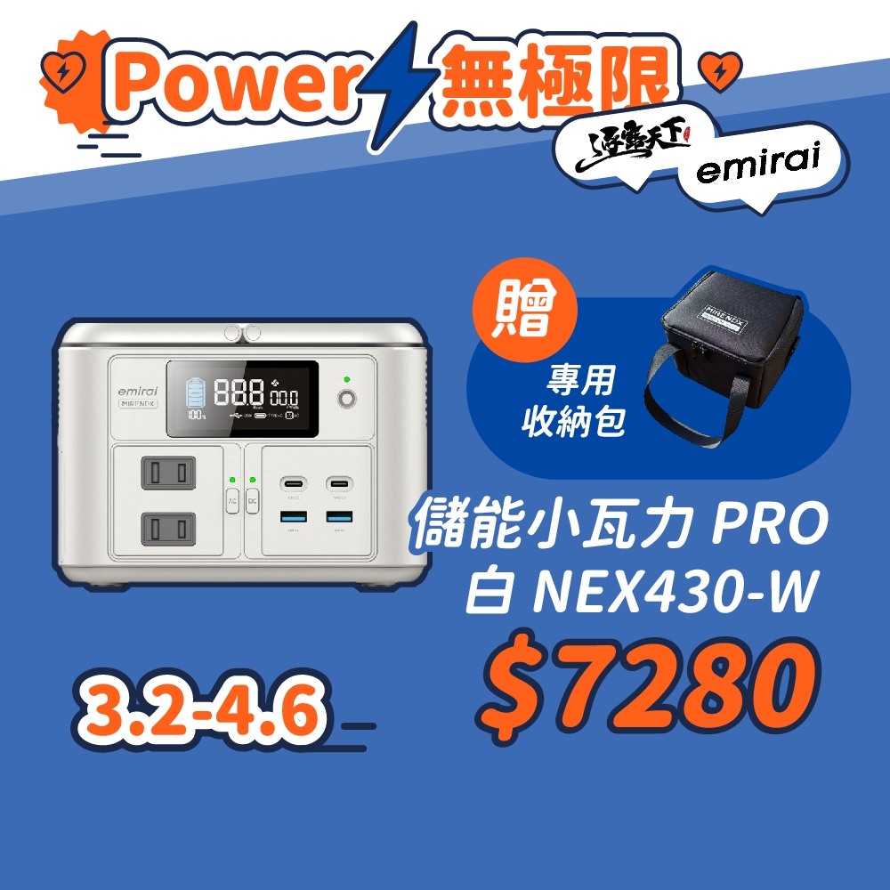 行動電源 [逐露天下] 日本emirai 儲能小瓦力PRO NEX430-W 移動電源 儲能電源 戶外電源 露營