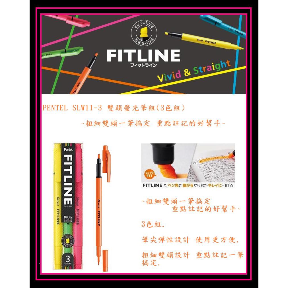 PENTEL SLW11-3 雙頭螢光筆組(3色組)~粗細雙頭一筆搞定 重點註記的好幫手~