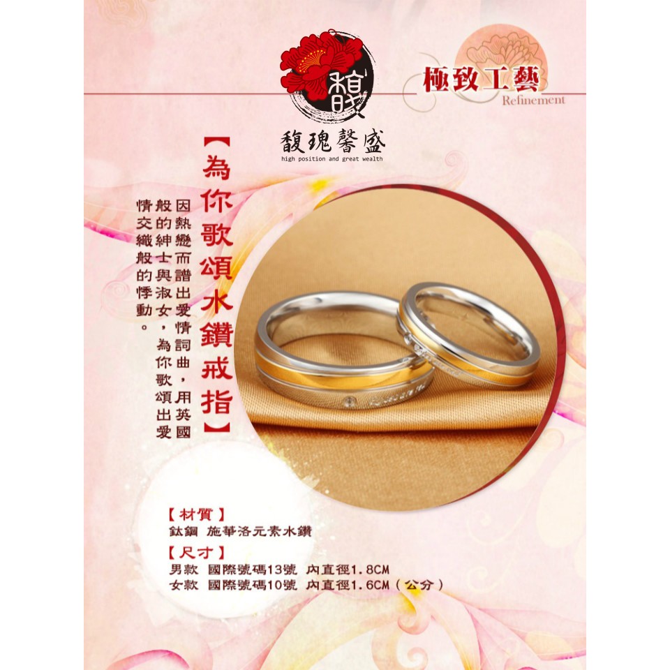 男款或女款【為你歌頌水鑽戒指】尾戒 對戒 婚戒 夫妻 訂婚戒 求婚戒 雕刻 鈦鋼 含開光 馥瑰馨盛NS0360-1