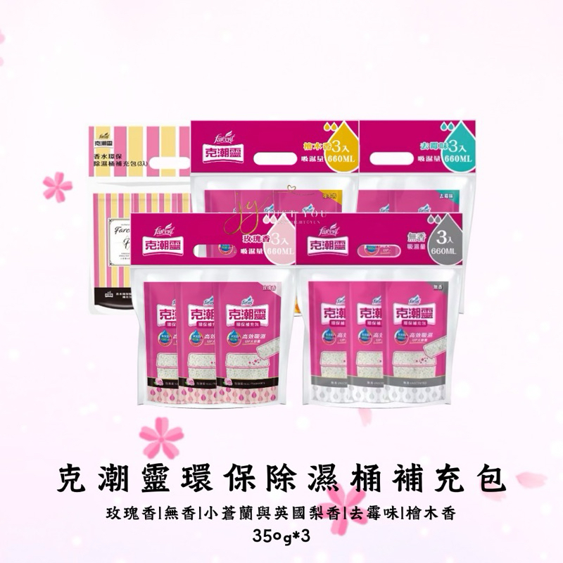 克潮靈環保除濕桶 補充包3入|去霉味/英國梨小蒼蘭/玫瑰香/檜木香/無香