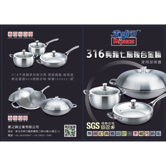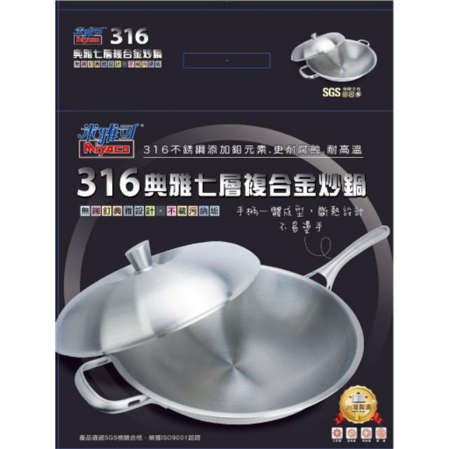 【米雅可】316典雅七層附合金炒鍋 28/33/36/40CM 無鉚釘好清洗 台灣製造 雜米芽Zarmiya