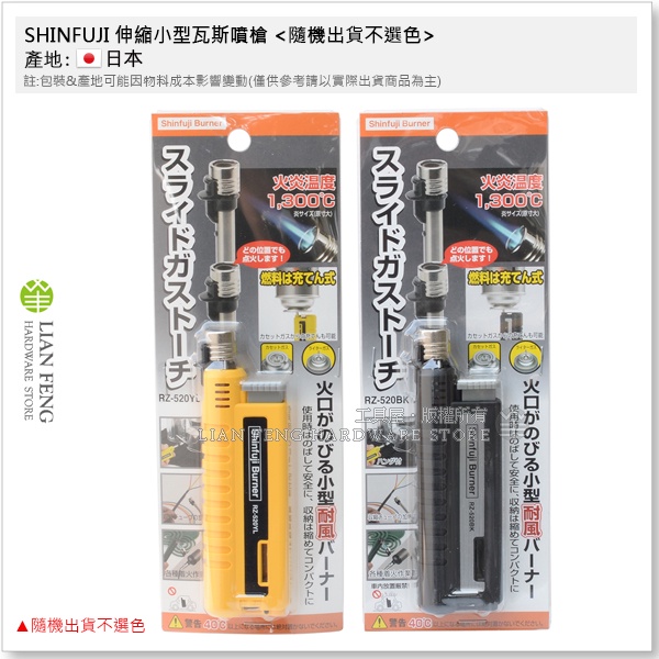 【工具屋】*含稅* SHINFUJI 伸縮小型瓦斯噴槍 RZ-520CYL RZ-520CBK 新富士 點火 露營 日製