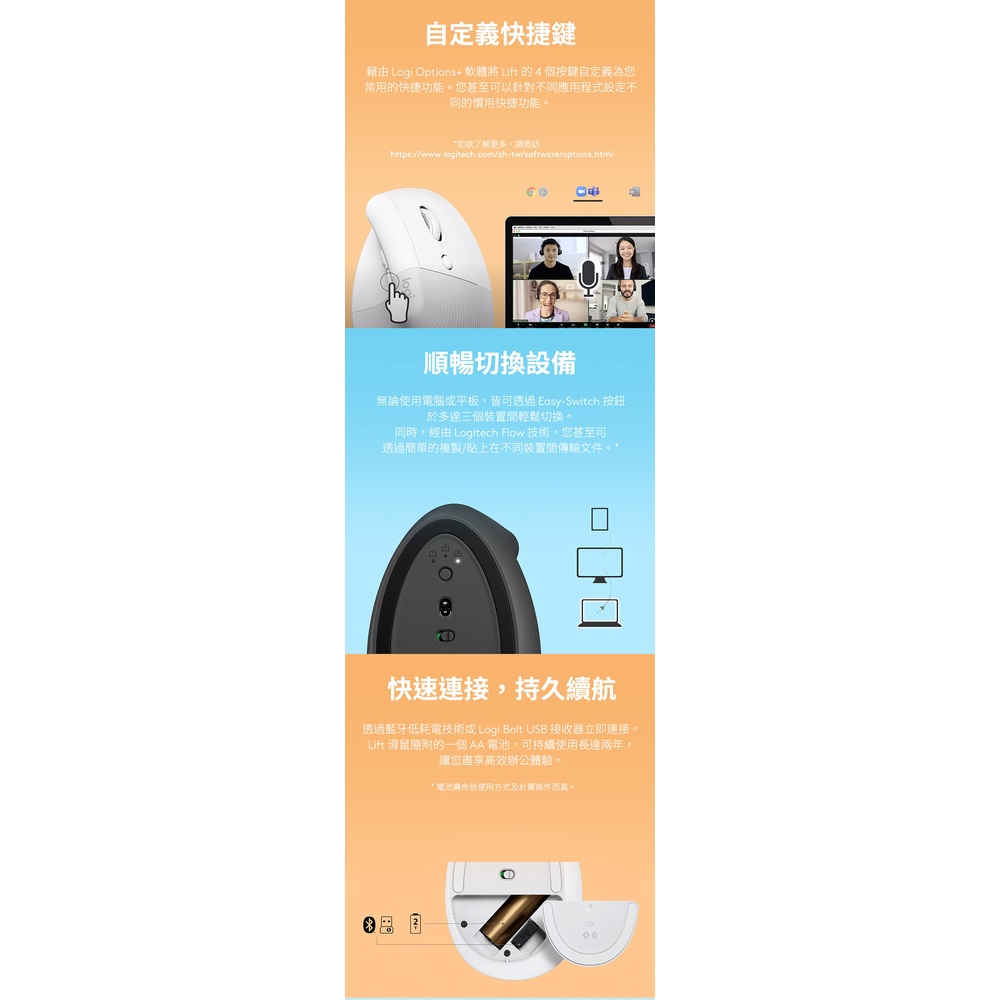 Logitech 羅技 Lift 玫瑰粉/珍珠白/石墨灰 人體工學 無線滑鼠 垂直滑鼠