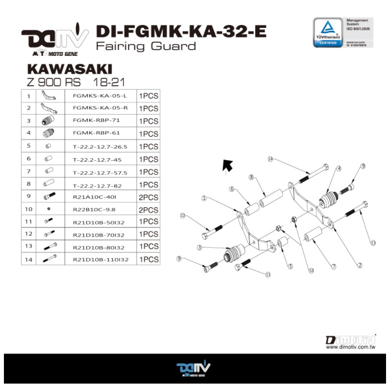 【93 MOTO】 Dimotiv Kawasaki Z900RS Easy款 車身柱 車身防摔球 車身防倒球 DMV
