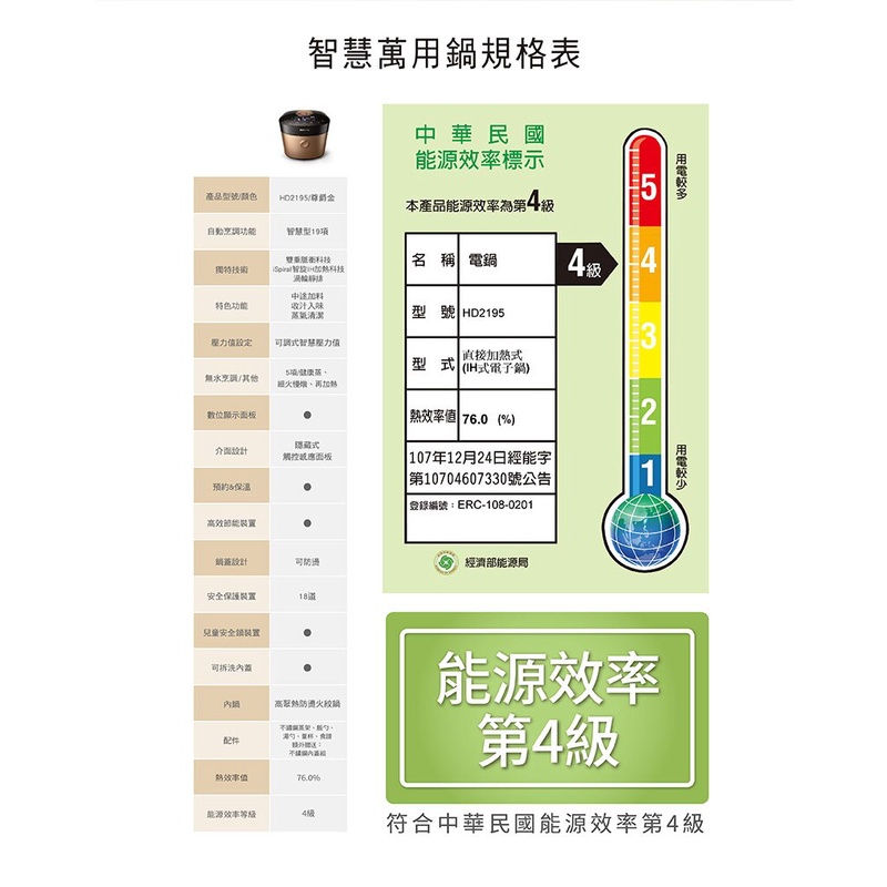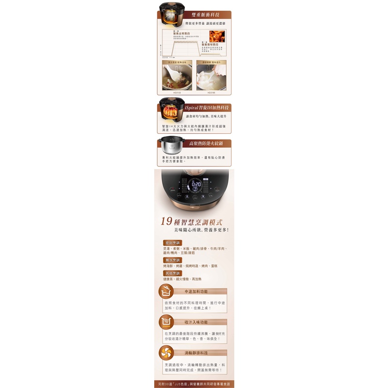 【贈HD2779 不鏽鋼內鍋+HR2291+廚具七件組】飛利浦PHILIPS 雙重溫控智慧萬用鍋-金小萬-HD2195
